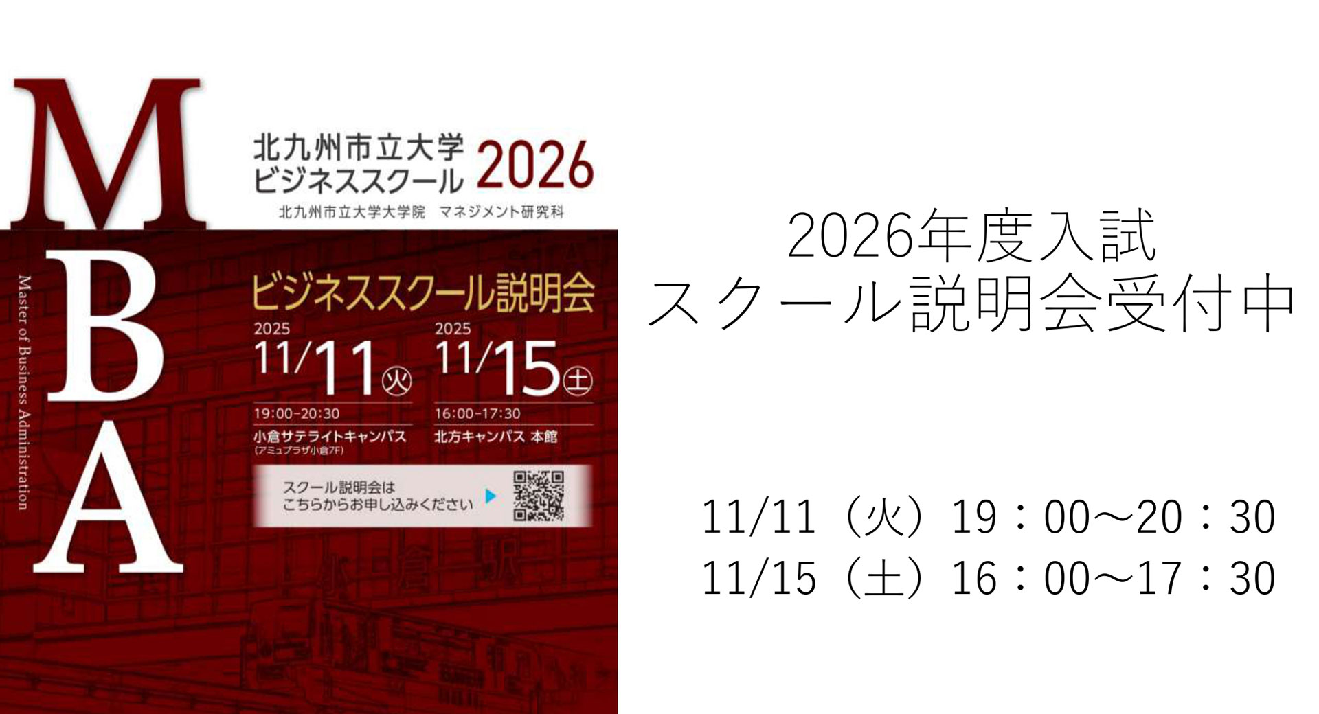 2026年度入学 冬期入試に向けたビジネススクール説明会を開催します(11月11日(火)および11月15日(土))