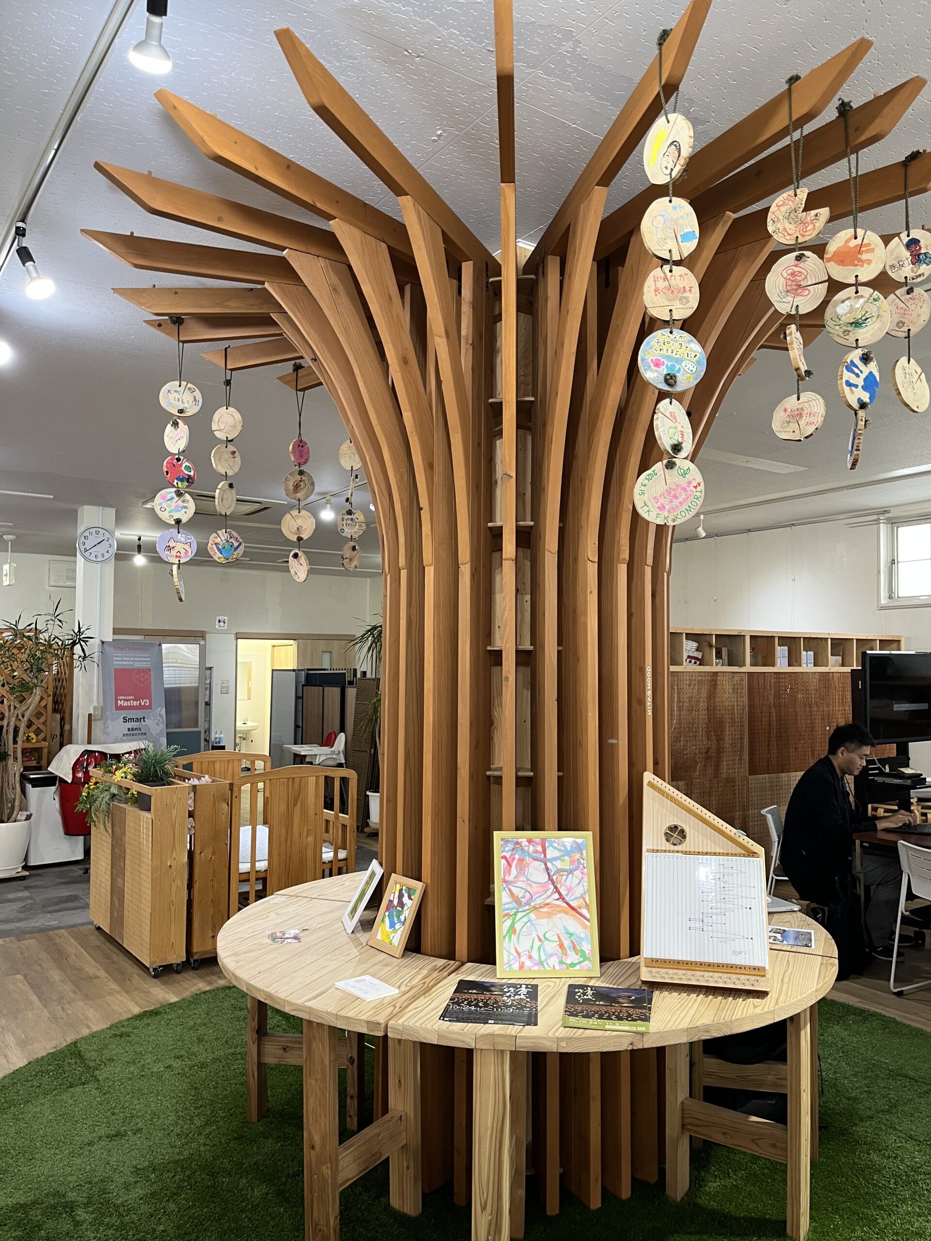 続いて、NPO法人わくわーくの講話へ。代表の小橋祐子さんから直接お話しいただく予定でしたが、外部案件と重なったため、福祉分野で利活用が広がる分身型コミュニケーションロボット「ORIHIME」を通じてオンラインでご参加いただきました。法人の概要や現況については、K2BS2年生で、昨年度の「地域づくり戦略」受講を契機に同団体で経営改善プロボノとして活動している小田修司さんが説明を担いました。途中、「竹チェロ」の開発・指導を担当するボランティアの田中昇三さんも話題提供してくださいました。