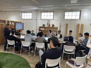 今年度の「地域づくり戦略」のフィールドワークでは、昨年度に続き北九州市を拠点に活躍する2名のキーパーソンにお話を伺いました。1件目の訪問先として予定していたコワーキングスペース「黒崎Yakata」は収容人員の都合上、受講生全員での訪問が困難であったため、代表の寺下良真さんのご厚意により、2件目に訪問予定であった「ココクル平野」(NPO法人わくわーく運営)へお越しいただき、同じ会場で両者の講話を実施する形式となりました。
