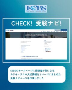 K²BSって、どんなところ?出願するには、何が必要なの?といった入学を検討している方が知りたい情報の掲載先を1つにまとめた「ここを見ればわかる!K²BS受験案内ポータル」を作成しました。